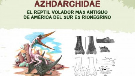 Paleontólogos e investigadores del Conicet presentaron el "Azhdarchidae", una especie de reptil volador, hallado en Río Negro, que vivió hace 100 millones de años y es el más antiguo de América del Sur, se informó oficialmente.   Los restos fósiles fueron hallados a orillas del embalse rionegrino Ezequiel Ramos Mexia.   "Se trata del reptil volador de mayor tamaño que existió en la historia de la Tierra que dominó los cielos durante la era de los dinosaurios", expresaron desde el área Cultura y Patrimonio provincial.   El hallazgo consiste en una vértebra del cuello descubierta en rocas de la Formación Candeleros, de 90 a 100 millones de años de antigüedad.   A diferencia de estas especies, la nueva vértebra encontrada representa un animal con una envergadura semejante a la de un cóndor.   En esta oportunidad, miembros del Laboratorio de Anatomía Comparada y Evolución de los Vertebrados (LACEV) dieron a conocer el hallazgo del Azhdarchidae más antiguo del continente.   "La investigación es posible gracias al trabajo conjunto con la Secretaría de Estado de Cultura de la provincia, órgano de aplicación y encargada de brindar los permisos para que se puedan llevar adelante estos importantes hallazgos", indicaron las fuentes.   En Argentina se conocen otros azdárquidos, como el Aerotitan sudamericanus, también de Río Negro, pero mucho más reciente (70 millones de años de antigüedad), y Thanatosdrakon amaru (85 millones), de la provincia de Mendoza, el cual es uno de los azdárquidos más completos y que habría alcanzado cerca de 9 metros de envergadura.